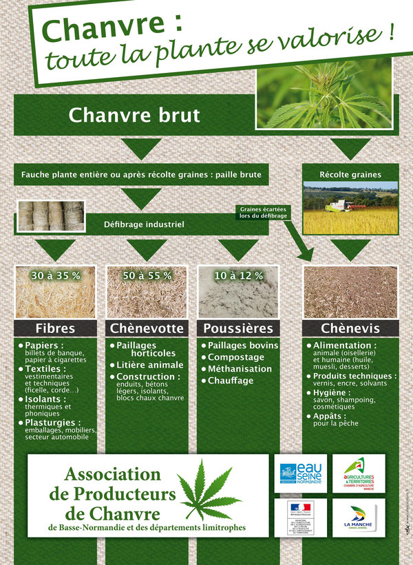 L'entreprise Agrochanvre, située à Barenton dans le Sud Manche et créée en 2008 par un chef d'entreprise locale, est spécialisée dans la transformation de paille de chanvre.