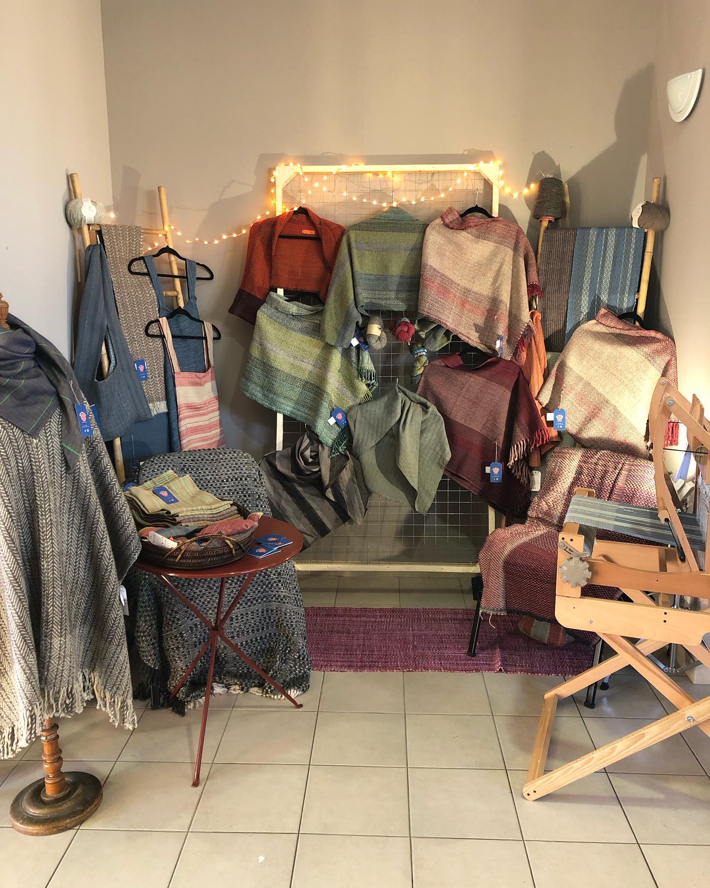 Marie réalise des nappes, des ponchos, des écharpes, du linges de maison et autres pièces, fait main et localement !