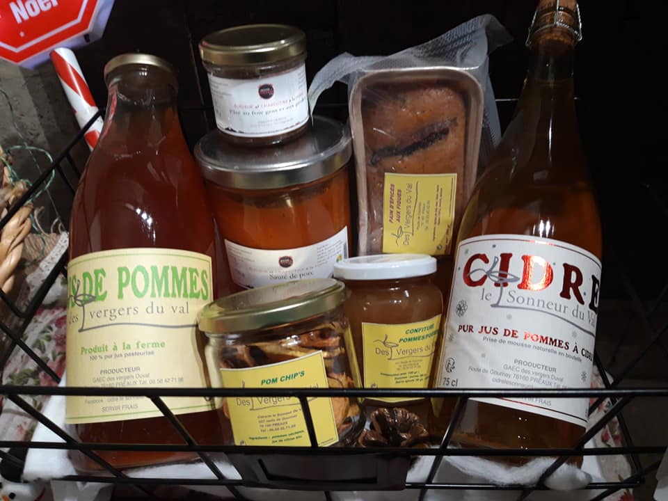 Fabrication de confitures en mode traditionnel avec des recettes originales (ex : pommes gourmandes = pommes/poires/raisins/noix et calva, confit de cidre, gelée de pommes au romarin...)