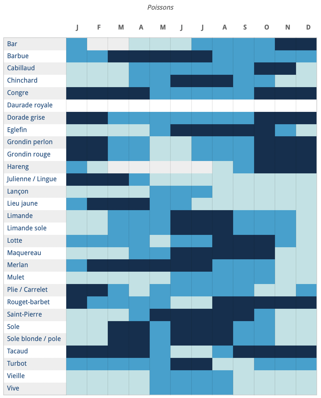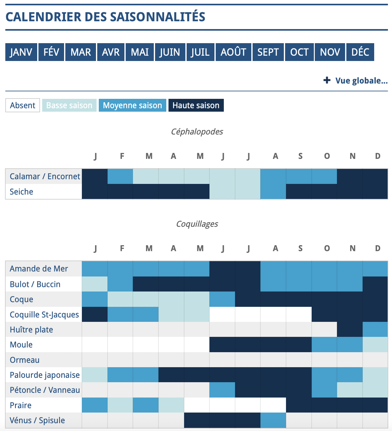 L’association Normandie Fraîcheur Mer propose également un calendrier complet de la saisonnalité des espèces sur leur site.