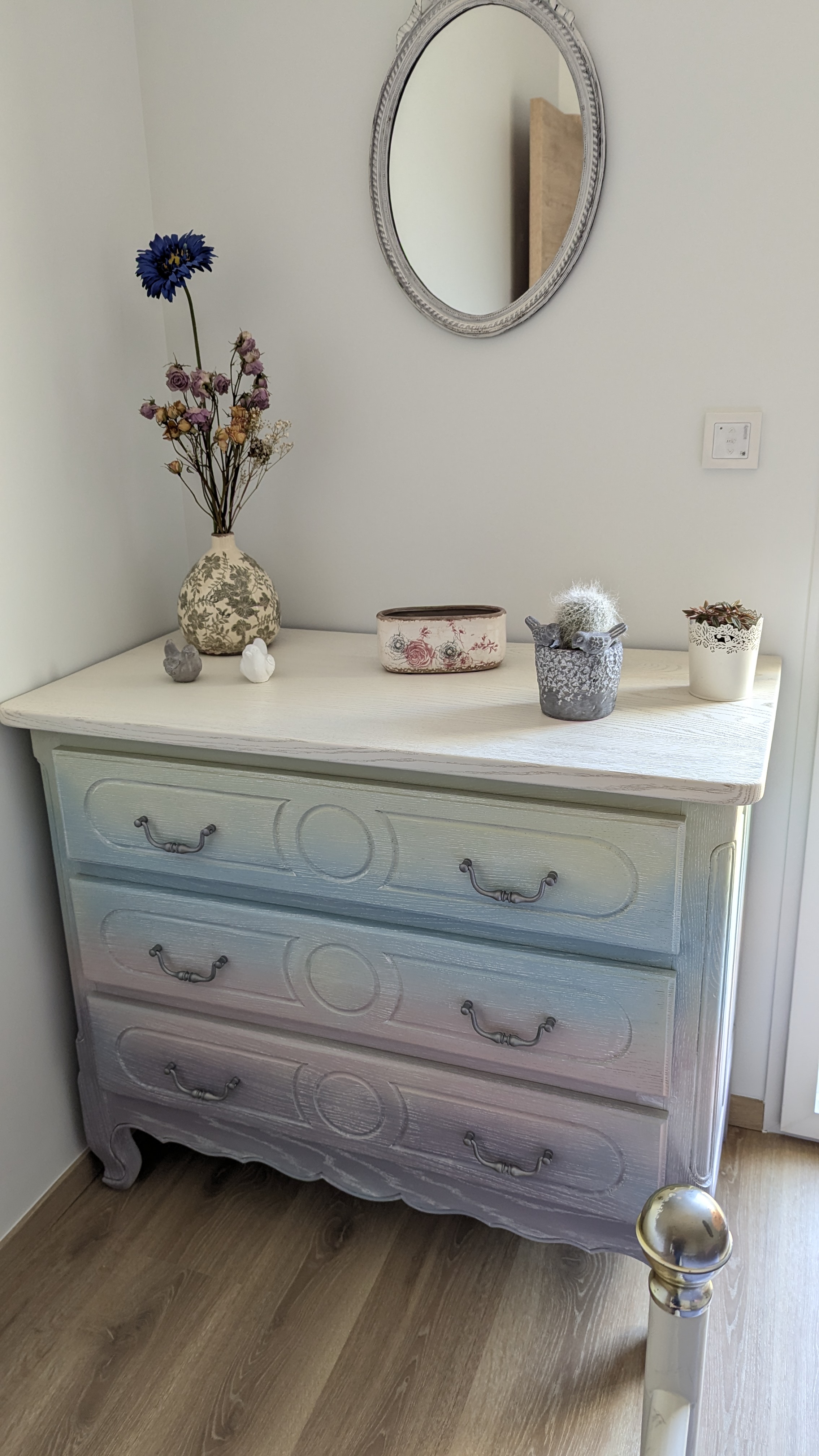 Artisane dans l'Orne, près de Flers (61) depuis 1997, je pratique la rénovation de meuble (relooking) et la rénovation de cuisine, je propose de décaper par aérogommage, j'utilise des patines et peintures spécifiques pour vos meubles en respectant vos choix et en vous conseillant tout en gardant l'esprit du meuble ancien.