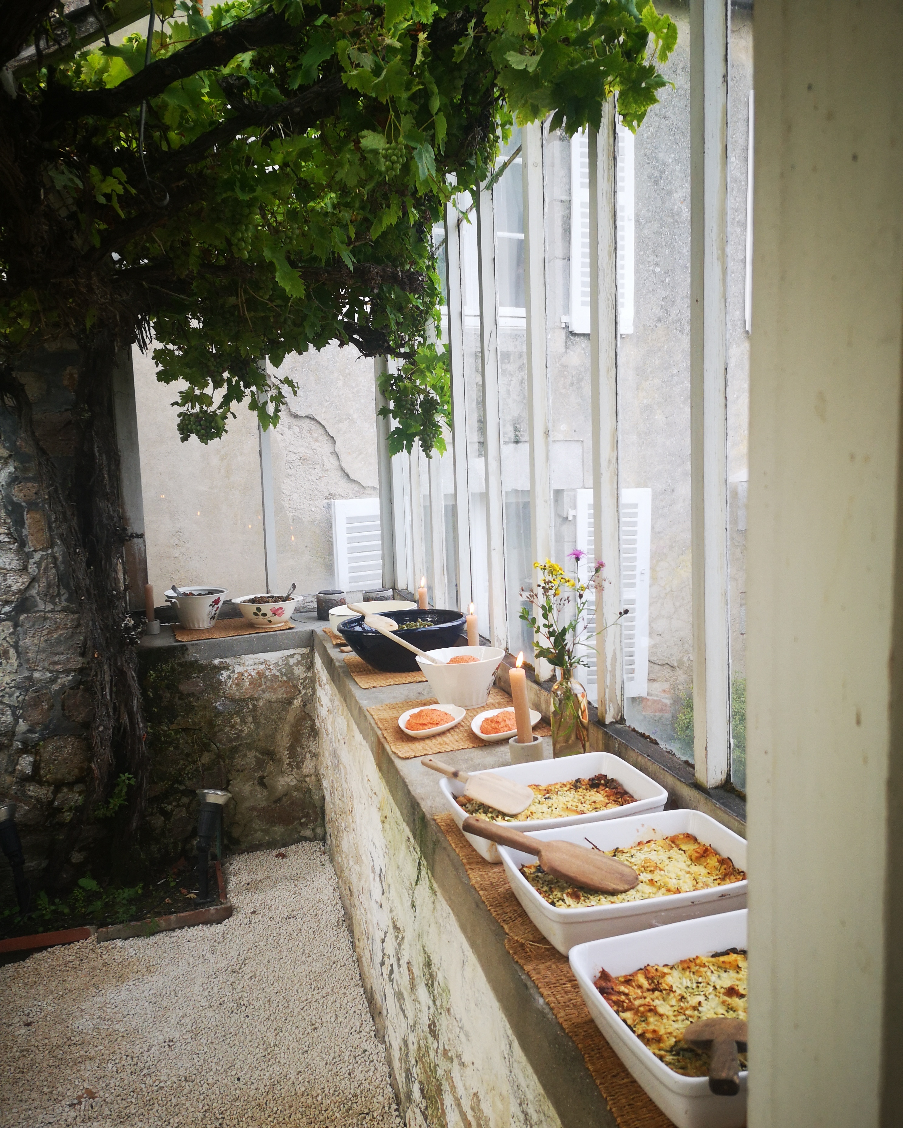 Je conçois un menu « entrée-plat-dessert », simple et généreux, pour tous vos convives rassemblés dans ce lieu choisi par vous.
