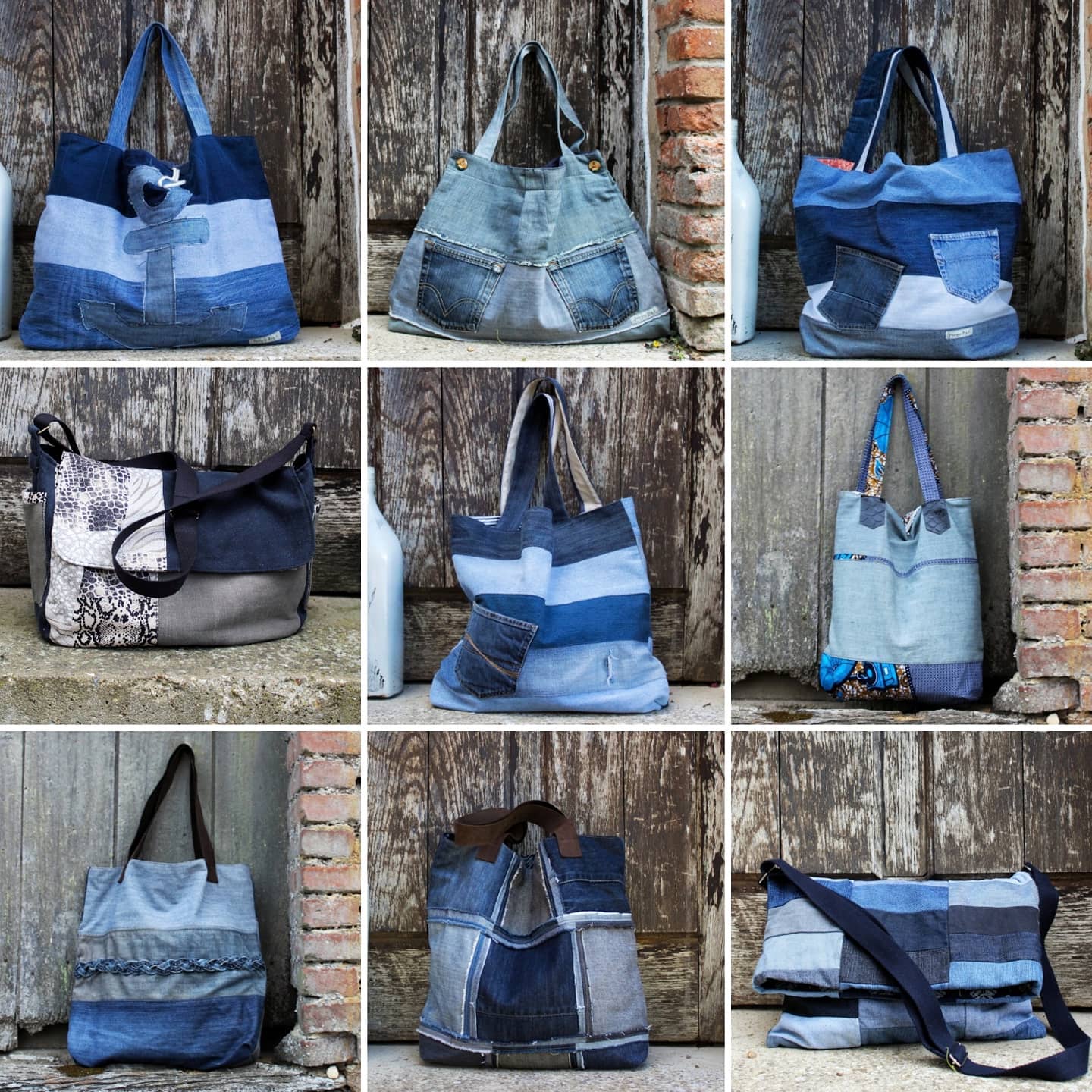 - Ma collection de créations en tissus recyclés : Mes créations sont basées sur une volonté de recycler les matière existantes au maximum. Ma matière de prédilection est le jean, que je détourne de milles façons. Des sacs, des pochettes, des décorations, des coussins, des tabliers, des sets de tables, … Je laisse s’exprimer la créatrice qui se cache en moi.