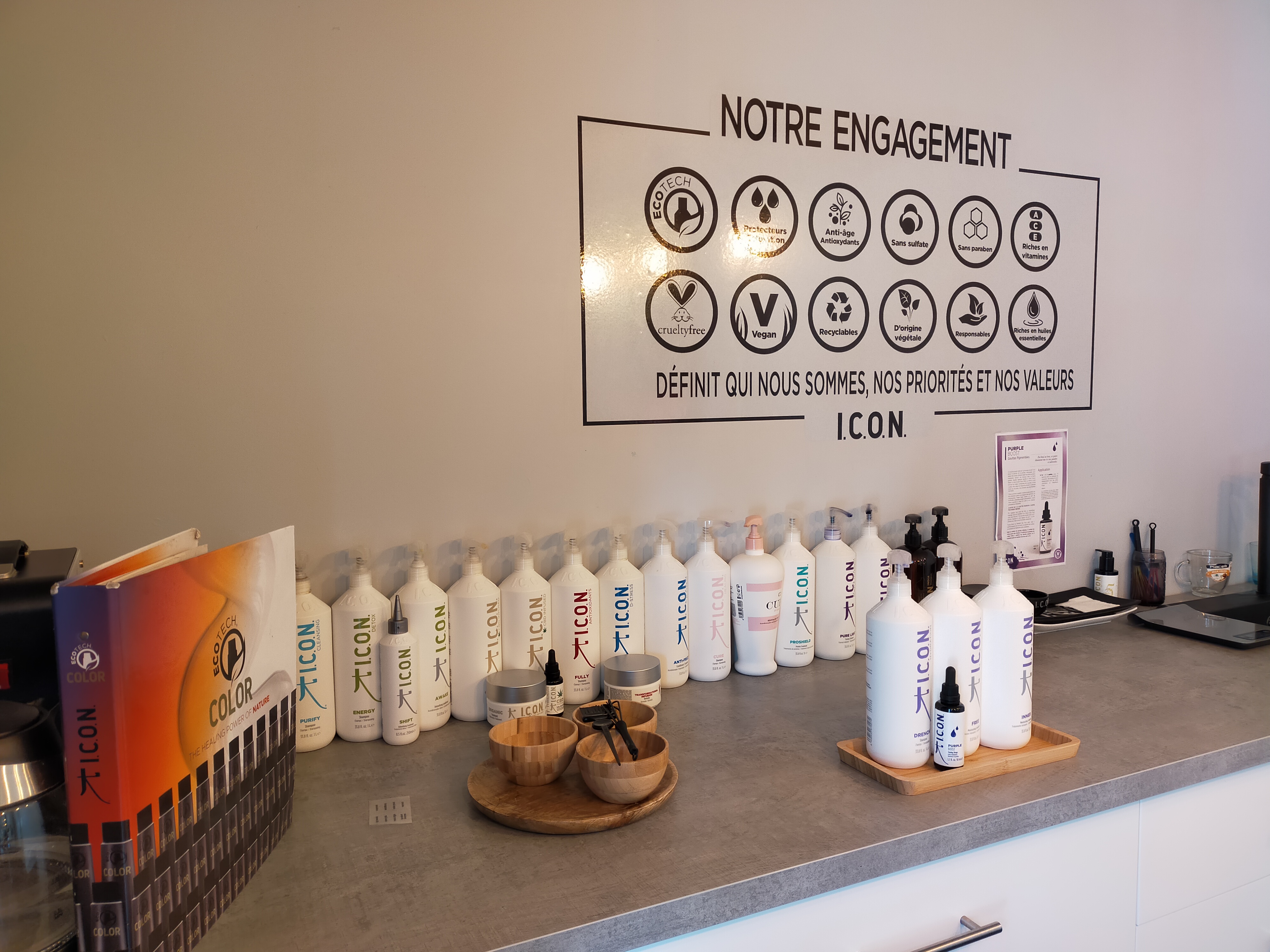 De mèche avec moi est un salon de coiffure mixte, coloriste qui utilise les produits de marque ICON ayant le label ECOTECH ainsi que les couleurs ICON sans parabène, sans sulfate, sans ammoniaque, à base d'ingrédients d'origine végétale.