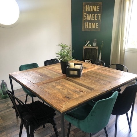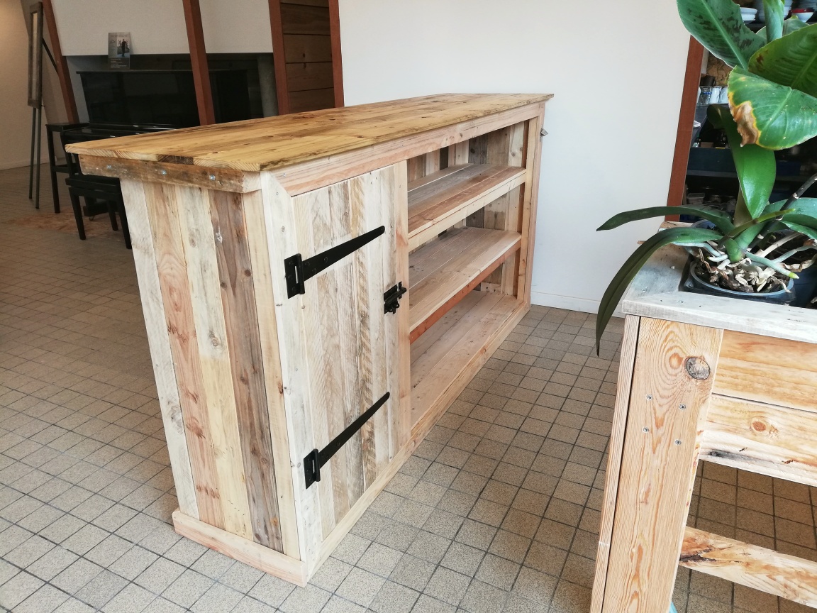Création sur-mesure de mobilier à partir de bois de palettes recyclées.