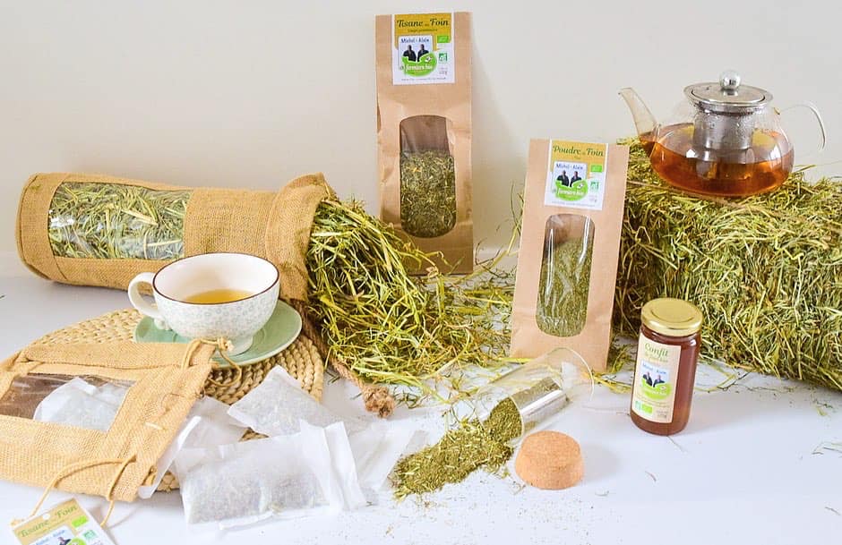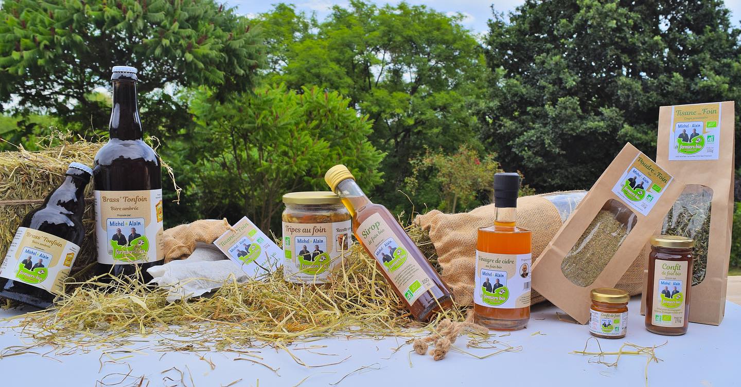 Vinaigre de cidre au foin, confit au foin, tripes au foin, sirop de foin, bière au foin, tisane au foin ... découvrez tous nos produits au foin.