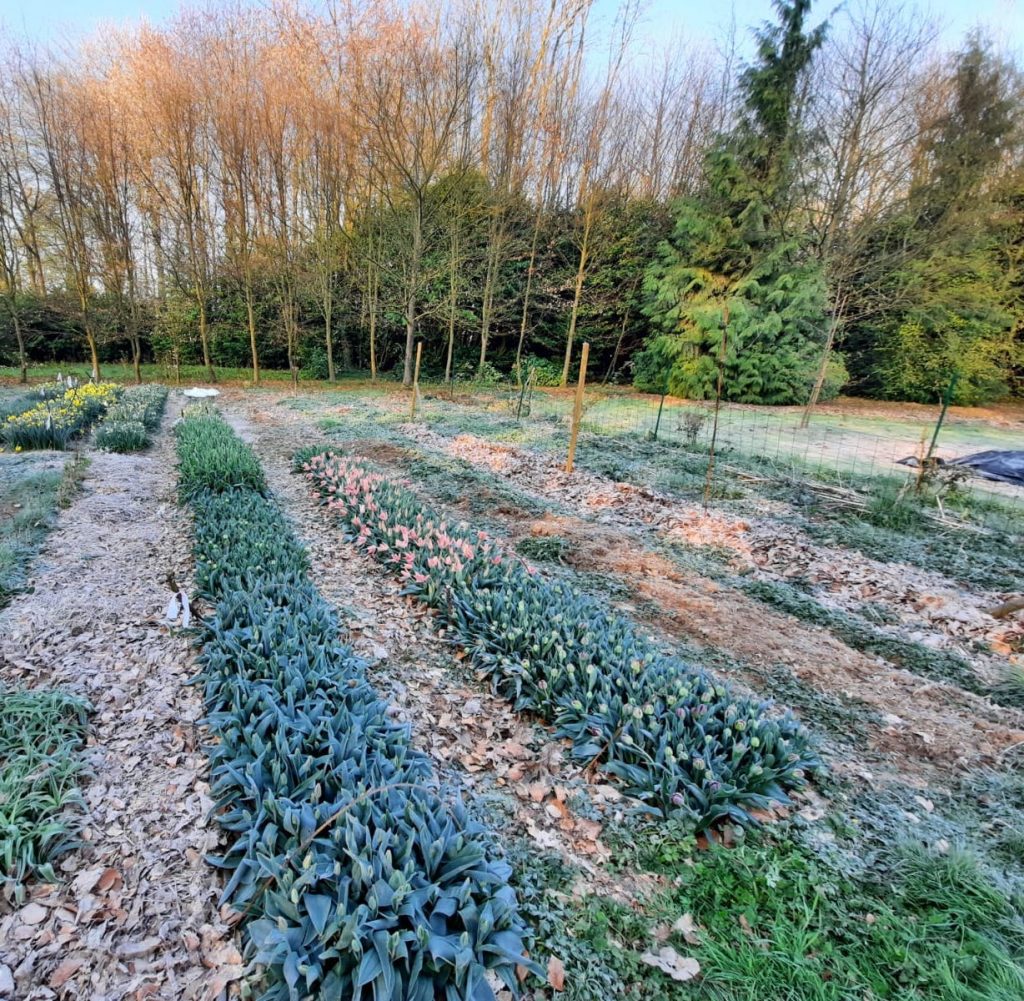 Je cultive une quarantaine de fleurs, des bulbeuses (tulipes, narcisses, renoncules, dahlias) aux fleurs annuelles (soucis, bleuets, amarante, cosmos…) en passant par les vivaces (roses, hydrangeas, pivoines, clématite, alstrœmères).