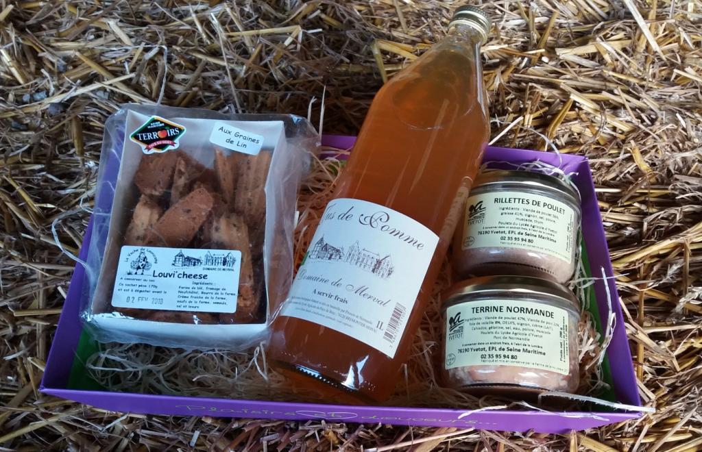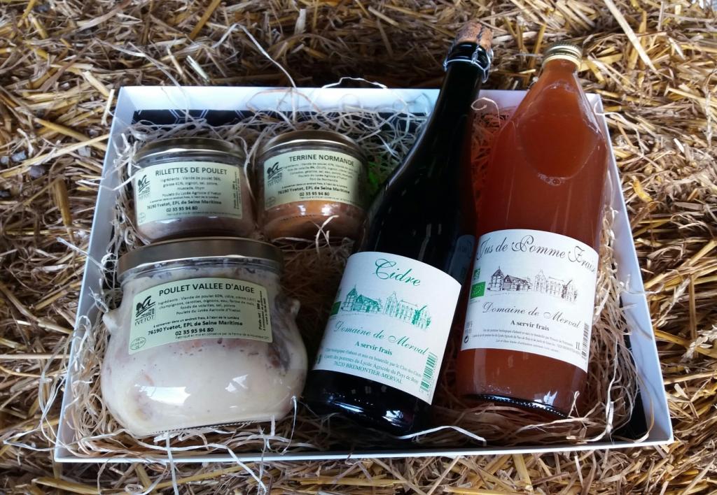 L'exploitation agricole d’Yvetot propose aussi des paniers garnis, avec les conserves de volailles et des produits en provenance du lycée agricole de Brémontier Merval, qui sont issus de l’agriculture biologique.