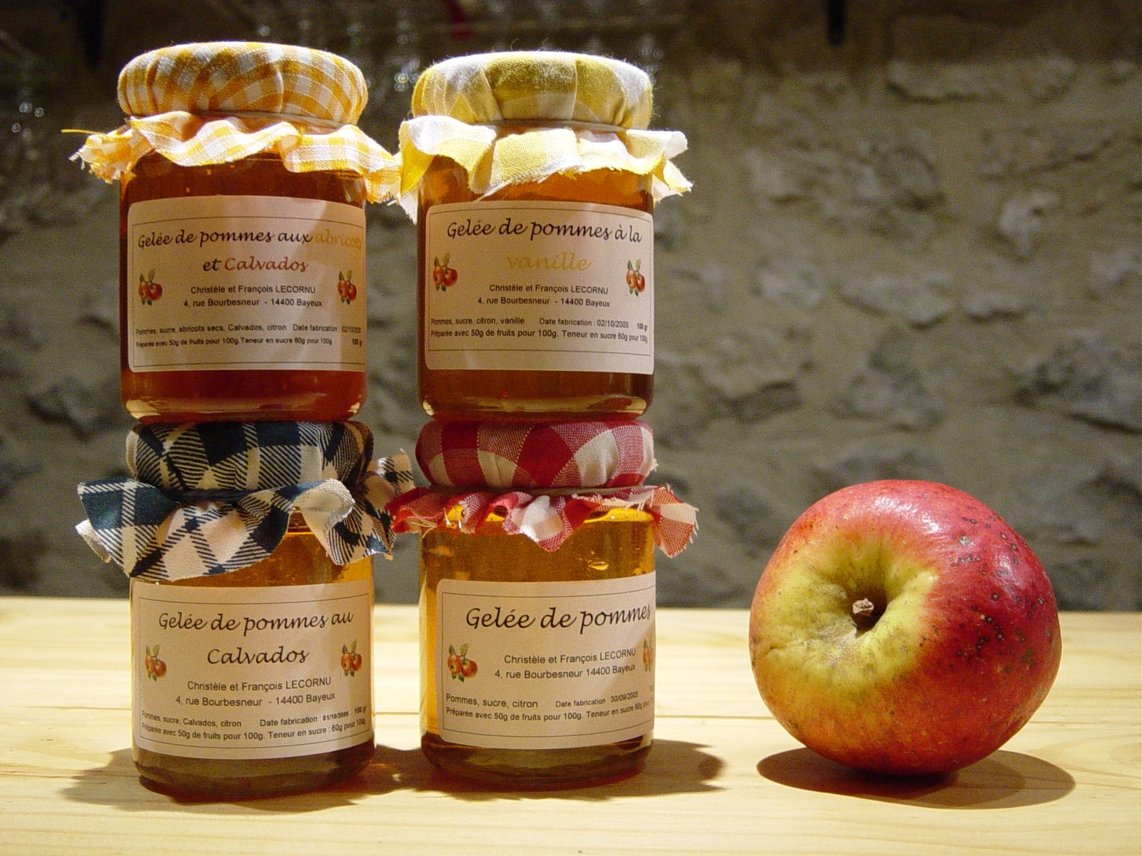 Bien que cela puisse paraître étrange, notre maison et notre cave à Calvados étant situées en centre ville, nous sommes producteurs fermiers bio de pommes à cidre que nous transformons en Cidre, Calvados, apéritif, jus de pommes, liqueur, eau de vie et gelées.
