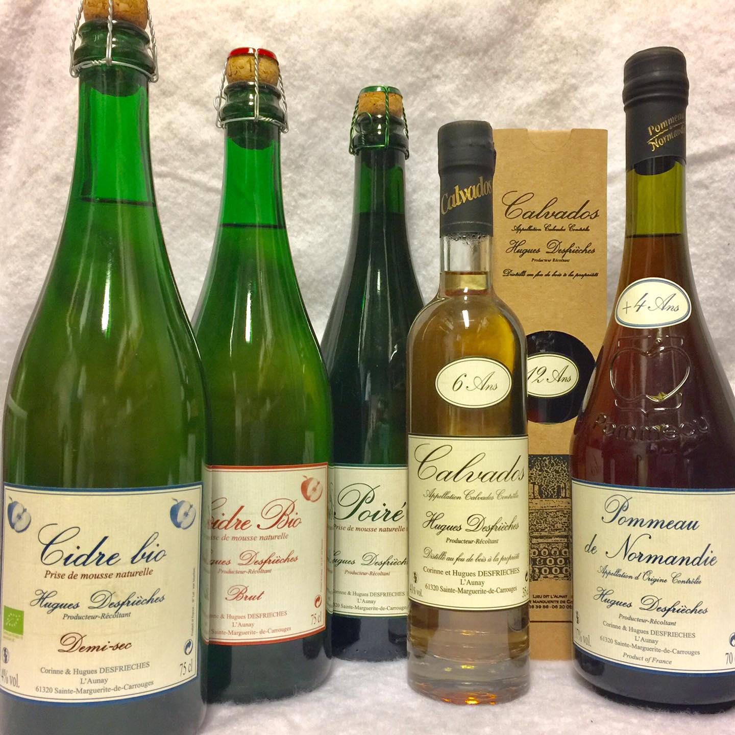 "Nous produisons d'une manière traditionnelle : jus de pomme BIO, jus de poire et jus de pomme-poire, Poiré, Cidre BIO brut et demi-sec, Pommeau de Normandie BIO AOC (plus de 4 ans), Eau de vie de Cidre et Calvados AOC 6ans, 12ans, 20ans, + de 40ans .