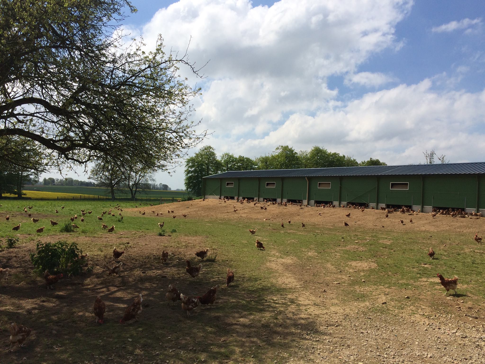 Ici, les poules sortent en plein air dès que la météo le permet.