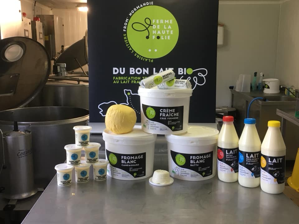 La ferme de la Haute Folie est une PME familiale laitière basée dans le centre manche spécialisée dans l’Ultra Frais, produisant des produits laitiers Haut de Gamme et Bio (crème, beurre, yaourt, fromage blanc, …).