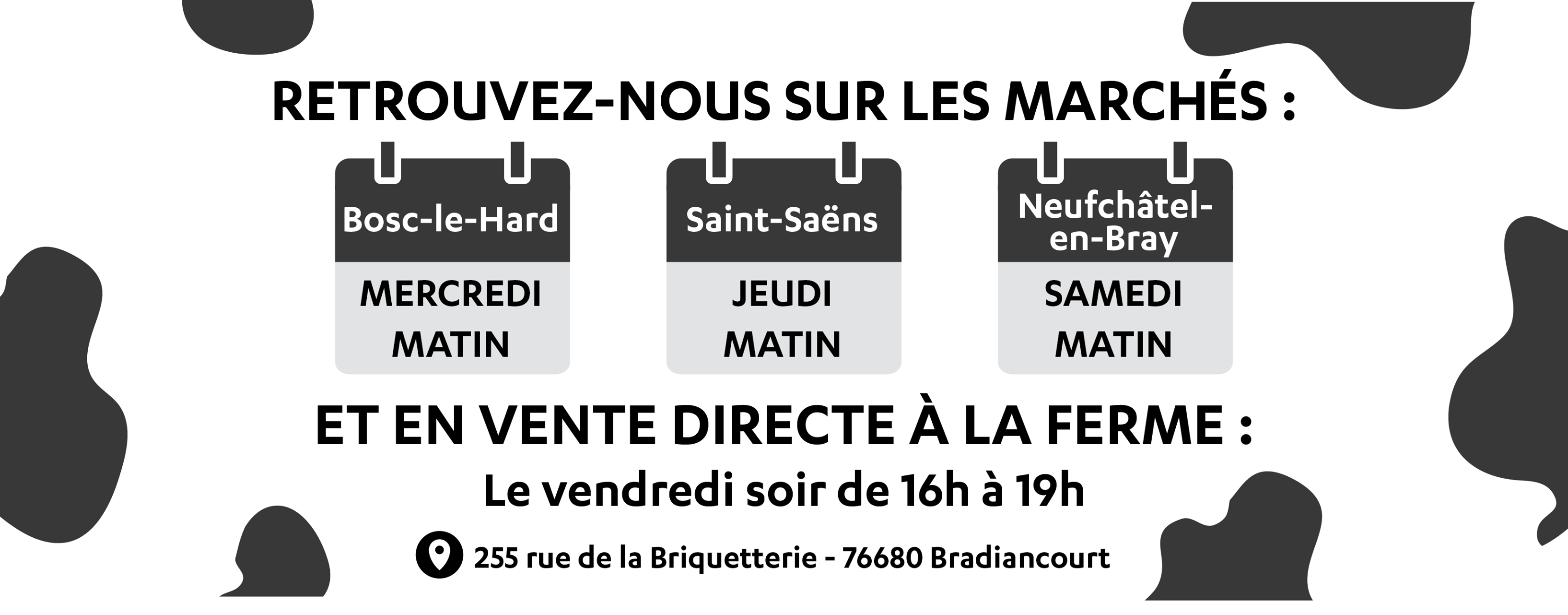 Attentifs à vos besoins, nous vous proposons nos produits fermiers fabriqués de façon traditionnelle avec le lait de nos vaches, en circuit court sur vos marchés et à la ferme.