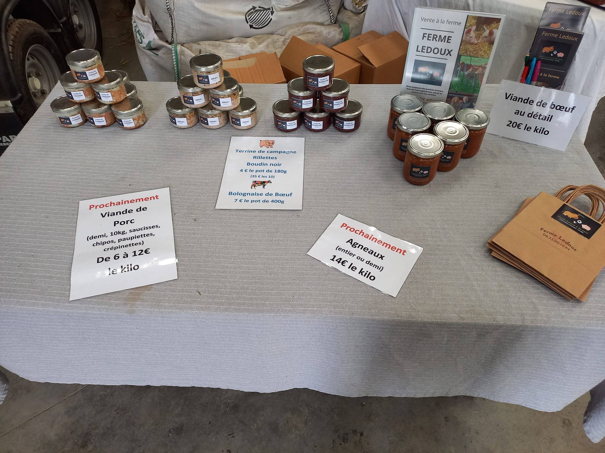 Vente à la ferme de viande bovine et de porc.