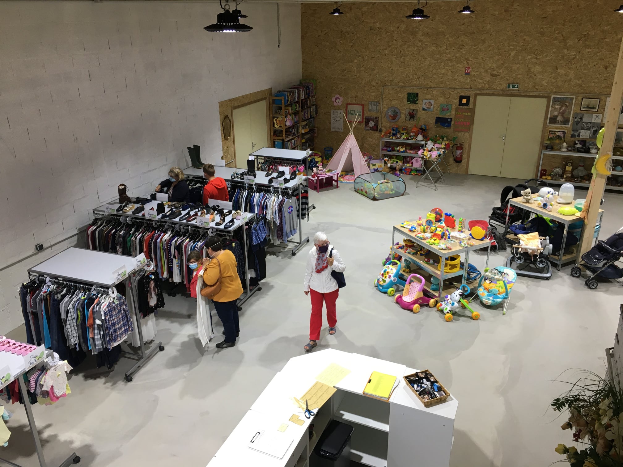 Grâce à son atelier chantier d’insertion, elle collecte, trie et revalorise les vêtements et objets du quotidien pour les remettre en vente à des prix modiques.