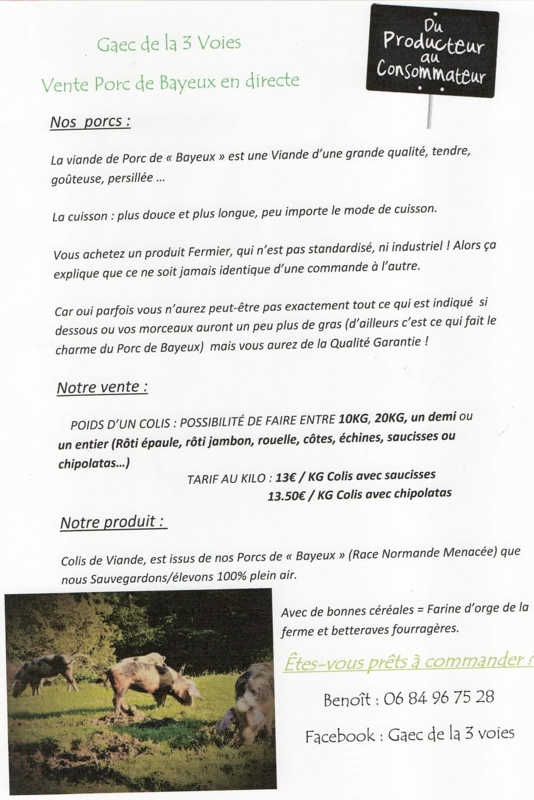 Producteur de bœuf, agneaux et porc de Bayeux. Colis