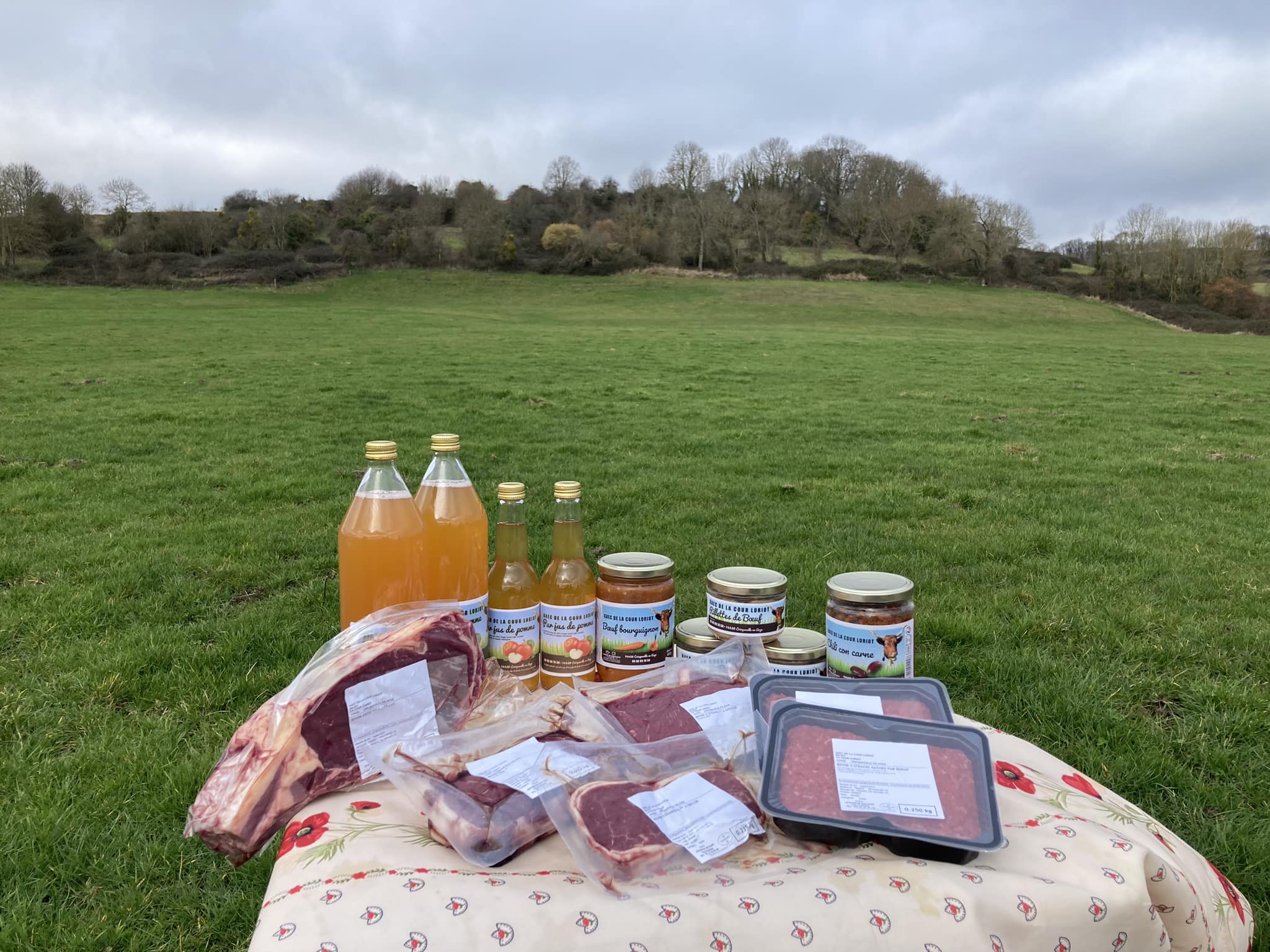 Producteur de viande et jus de pomme. Colis