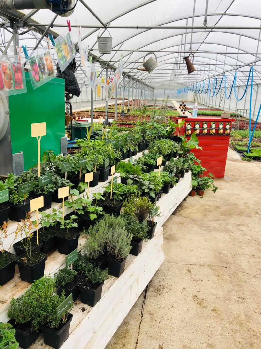 Nous vous proposons les classiques du potager : choux, salades, épinards, oignons, poireaux, concombres, courgettes, courges, cornichons, melons, betteraves, céleris, aubergines, poivrons, piment, fraisiers mais aussi plus de 25 variétés de tomates et d’aromatiques, ainsi que des cultures plus originales sous nos climats : cacahuètes, pastèques…