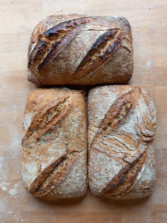 Nous faisons également du pain au levain à la ferme depuis début janvier, à partir de notre farine de blé ancien et d'une farine boulangère également issue de variétés de blé très anciennes.