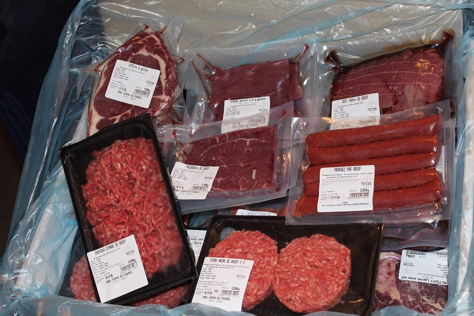 Vente de viande de bœuf en caissettes de 12kg et 6kg.