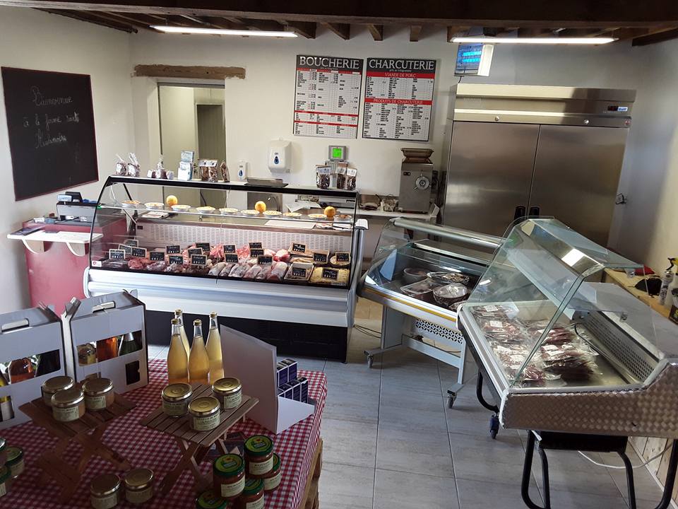 Nous avons un magasin à la ferme où nous proposons des produits divers de notre ferme et des produits locaux comme produits laitiers, légumes, cidre...