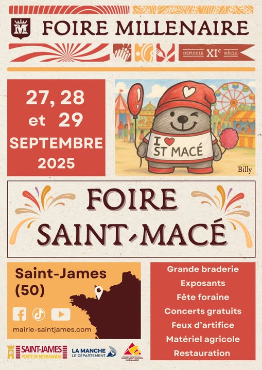 Rendez-vous les : 𝟐𝟕, 𝟐𝟖 𝐞𝐭 𝟐𝟗 𝐬𝐞𝐩𝐭𝐞𝐦𝐛𝐫𝐞 𝟐𝟎𝟐𝟓𝐀𝐮 𝐩𝐫𝐨𝐠𝐫𝐚𝐦𝐦𝐞 : - Concerts gratuit en live avec les L5, Allan Théo, Super Glitter - Tribute d'ABBA - Grande braderie - Exposants agricoles- Fête foraine- Feux d'artifice- Buvette et restauration