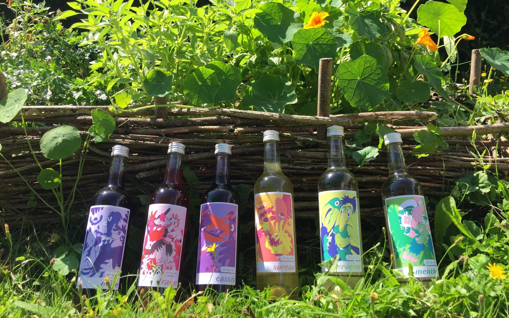 Découvrez nos sirops de sarriette, armoise cola, basilic, romarin, géranium, fenouil, angélique, mure, framboise, fraise, cassis, reine claude, cerise, menthe, sureau...