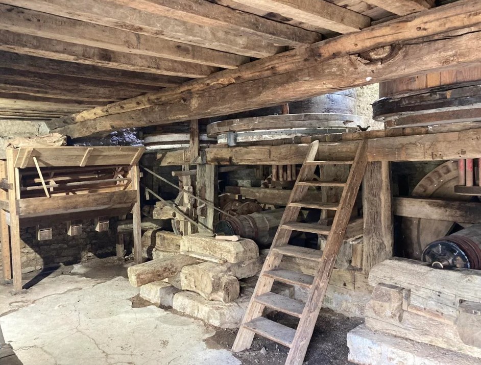 Le moulin est dans état de conservation saisissant ! les gants du meunier sont encore en place, comme s’il était encore là.