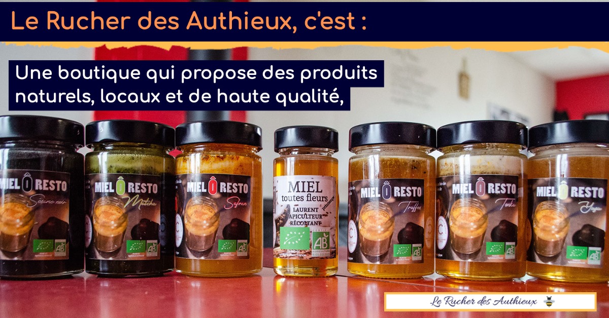 Le Rucher des Authieux a plusieurs particularités mais la plus forte est l'élevage de mes abeilles dans un milieu naturel avec aucun traitement chimique sur mes butineuses ce qui nous donne le droit d'avoir une certification bio sur notre production.