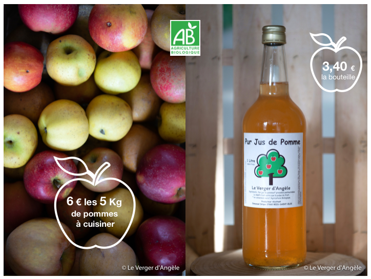 Nous produisons du jus de pommes, du jus de pommes pétillant, de la purée de pommes et du jus de pomme poire