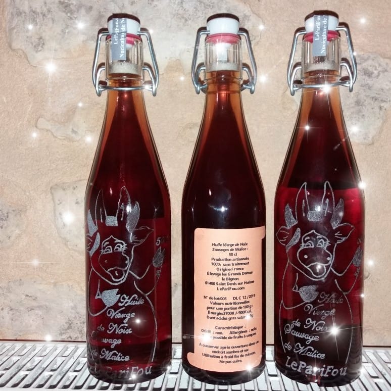 Sa première récolte date de 2013. 1 500 noyers, dispersés dans le Perche et dans l’Eure. Première presse en 2014.
