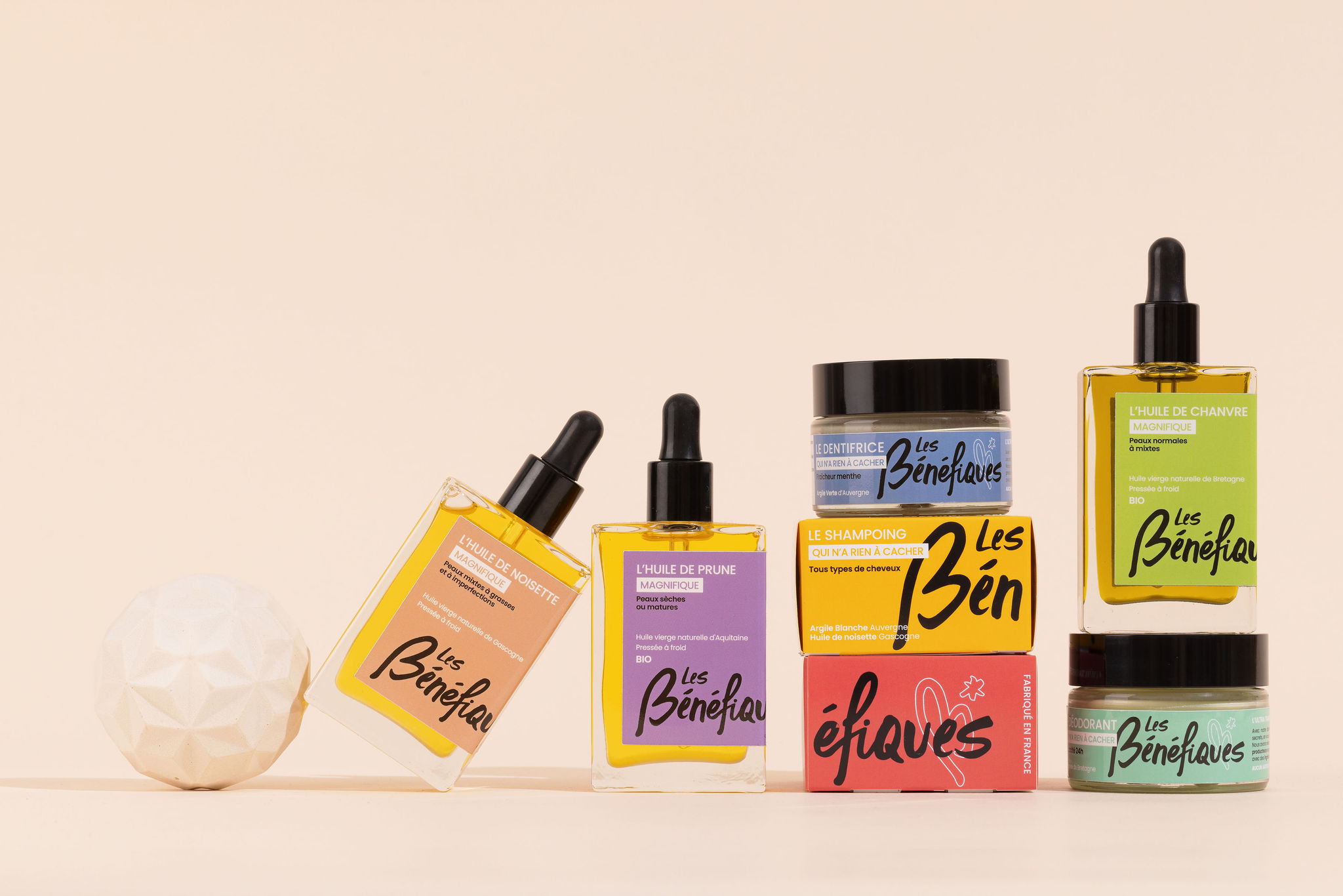 Chez Les Bénéfiques, nous créons des formules minimalistes en utilisant des ingrédients naturels et de qualité venant de producteurs aux 4 coins de la France pour privilégier le local et le circuit court.