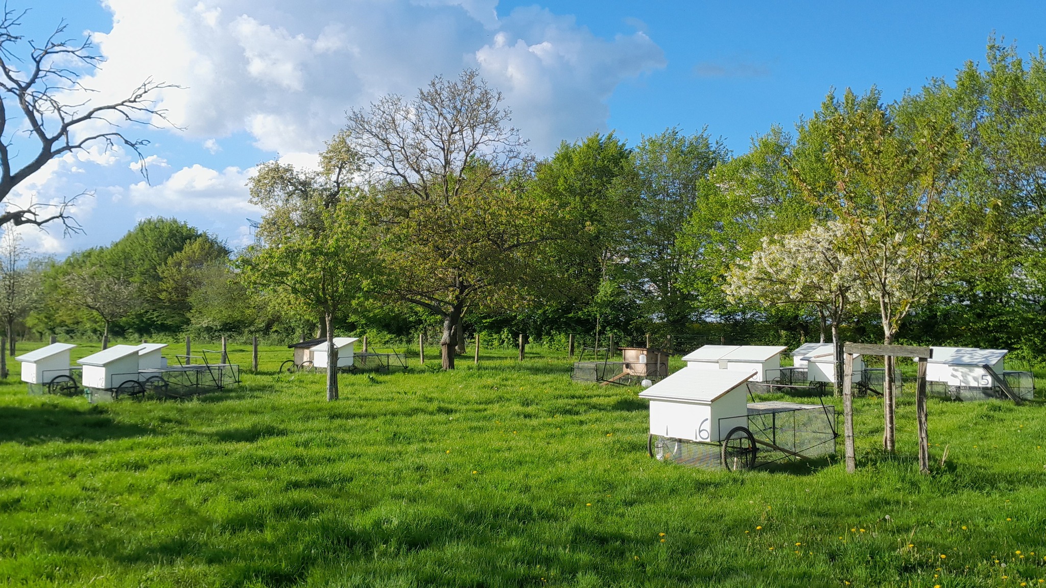 Ils sont logés dans des cabanes mobiles, déplacées chaque jour pour leur apporter de l’herbe à volonté, tout en étant protégés des prédateurs.