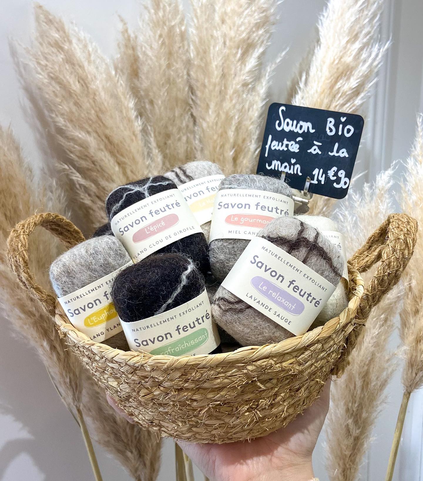 Découvrez aussi les accessoires tournant autour de la salle de bains. Résolument orientée zéro déchet, Aurélie travaille avec des artisans locaux pour les tissus, pour des pochettes à brosse à dents, ou de la laine de mouton feutrée pour y glisser le savon.