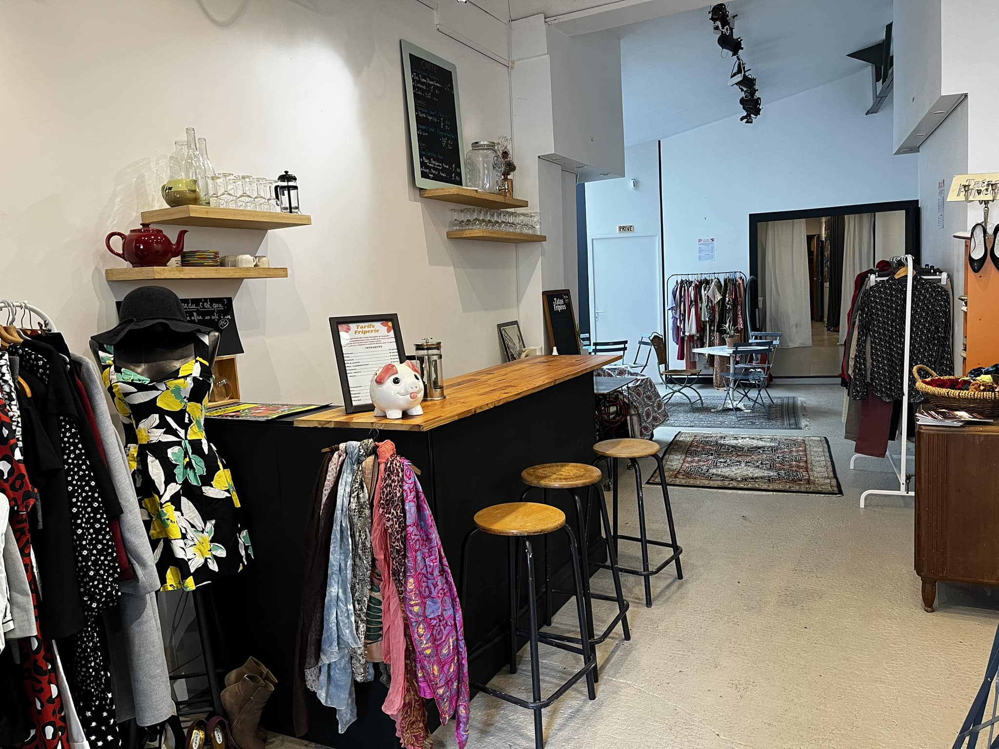Les Tatas Fripées est un café culturel associatif avec un espace friperie solidaire.