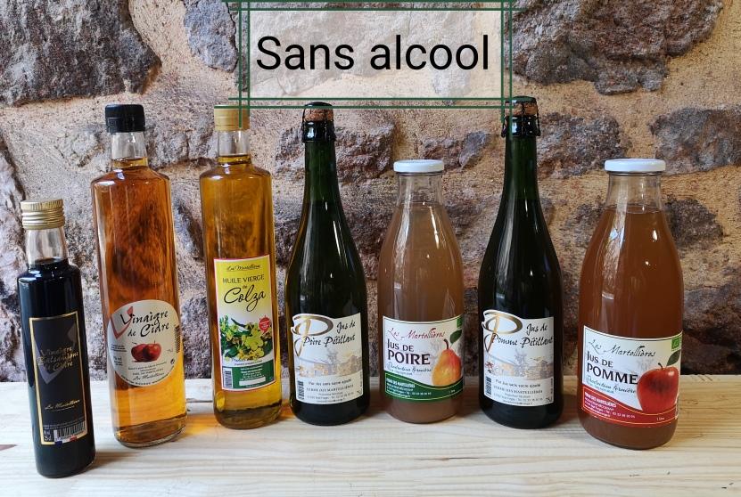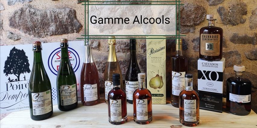 Nous produisons : Effervescence de Poire, Poiré Rosé, du Calvados AOC, pommeau AOC, cidre, poiré, poiré de Domfront, jus de pomme et poire, vinaigre de cidre, balsamique de cidre, huile de colza, crème de pomme
