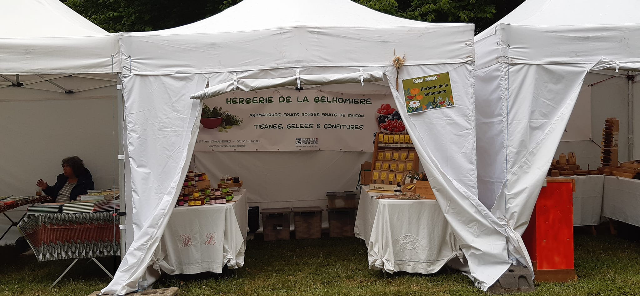 L'herberie de la Belhomière, c'est une production, sur 1,4 Ha, en biodynamie et permaculture, de plantes aromatiques et médicinales, ainsi que plein de fruits, dont , essentiellement, des fruits rouges (cassis, groseilles rouges et blanches, framboises variées, chaftas, mures sauvages et... apprivoisées, myrtilles...), mais aussi des prunes, des pommes, coings et figues.