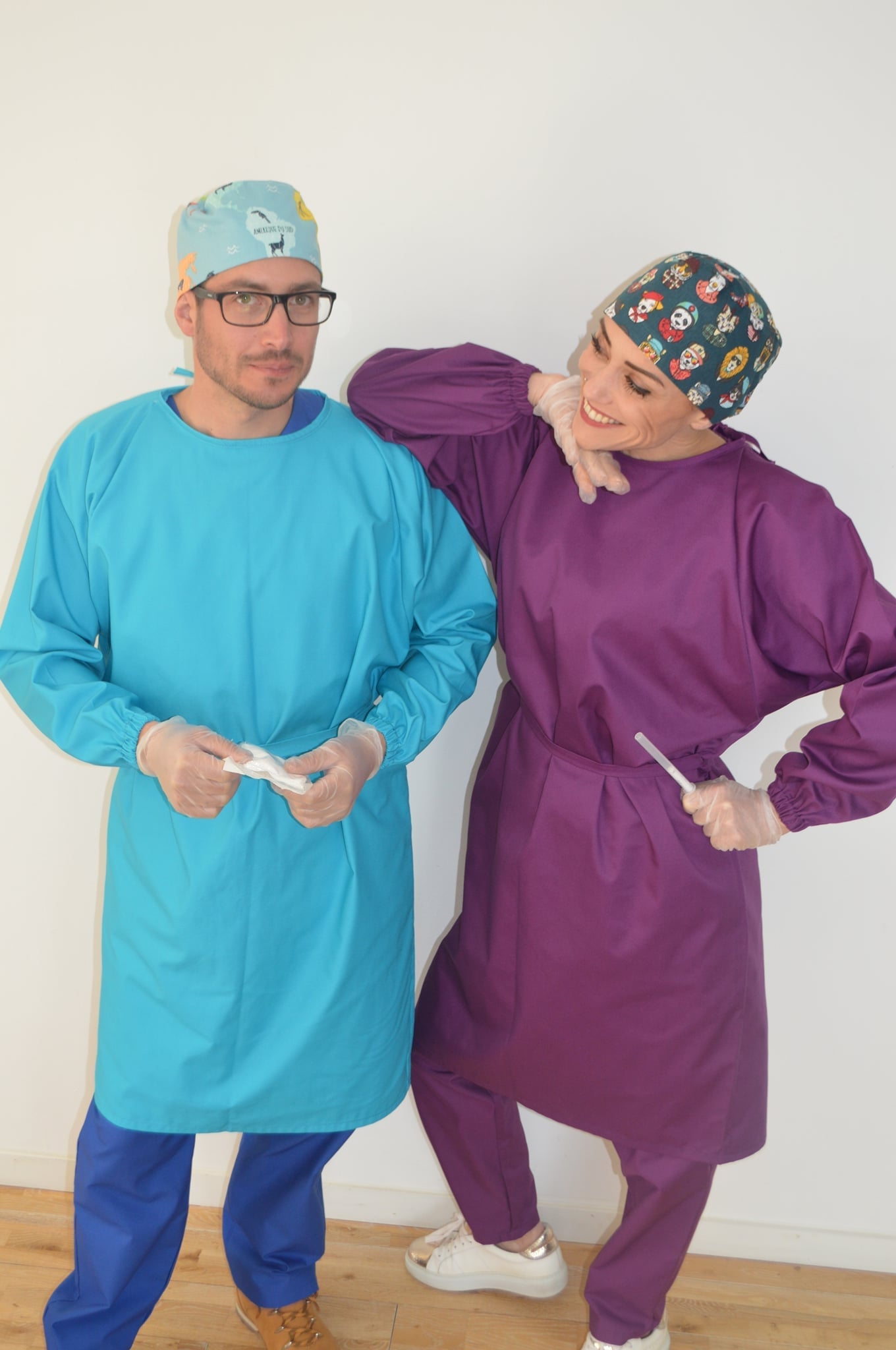 Parcourez nos créations de blouses et calots de bloc en tissu, conçus pour les médecins, chirurgiens, infirmières, dentistes, vétérinaires et autres professionnels de santé.