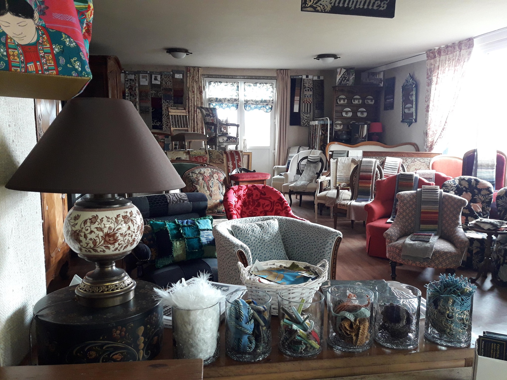 Espace antiquités, accueil à l'atelier/boutique. Grand parking.