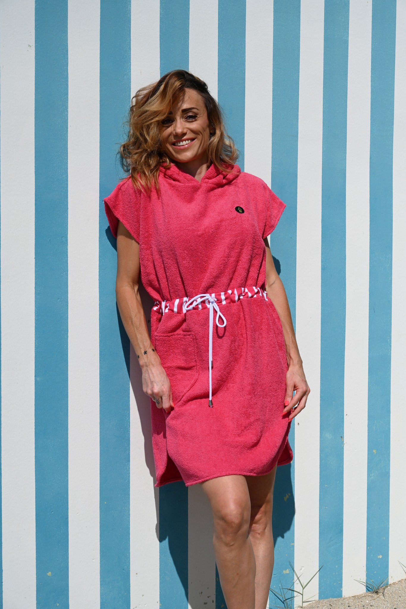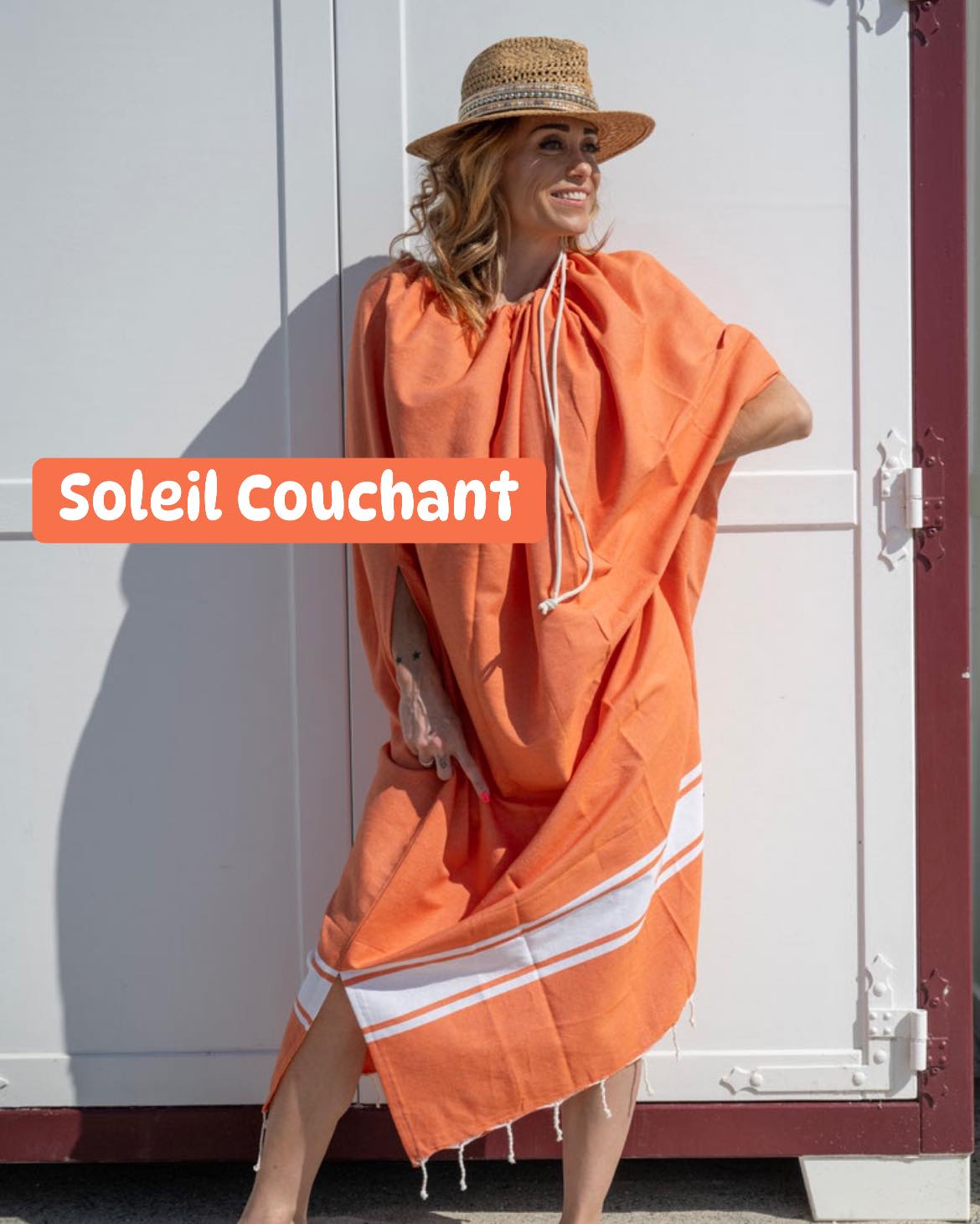 La cabine est revisitée et adaptée à l'époque actuelle en tissu "fouta" 100% coton, avec un cordon qui permet d'être desserré et de servir de serviette de plage.