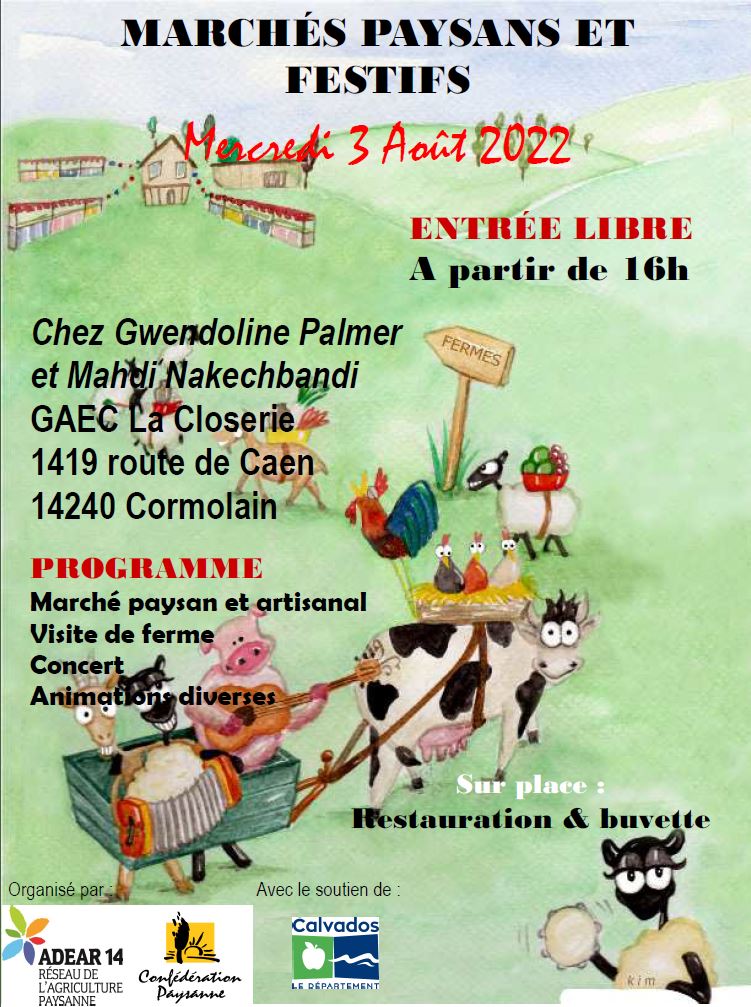 En partenariat avec l'ADEAR 14, La Closerie accueillera le mercredi 3 août prochain un nouveau marché paysan et festif !
