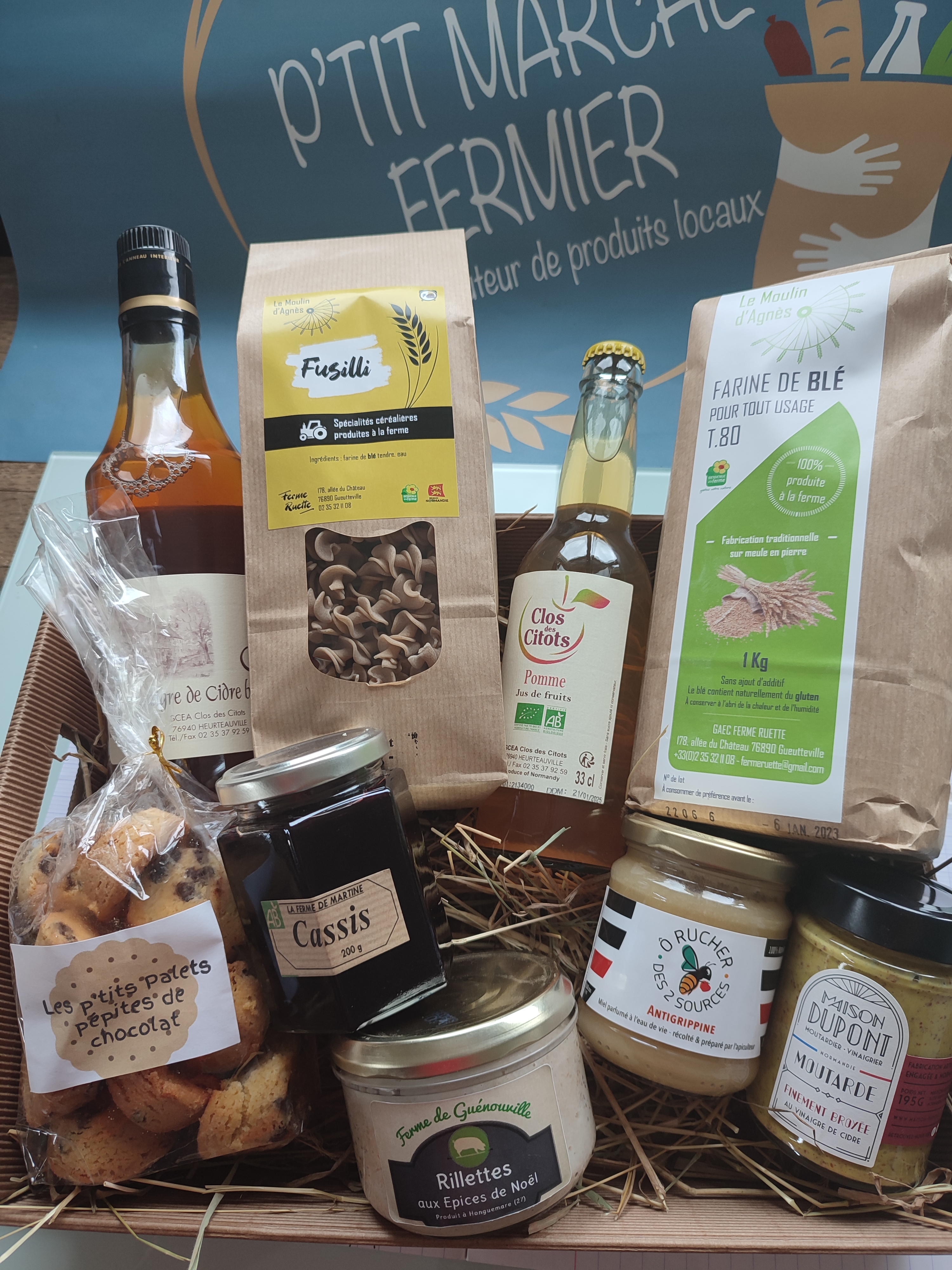 Paniers garnis à disposition dans les distributeurs ou possibilité de les composer selon votre budget et vos envies.