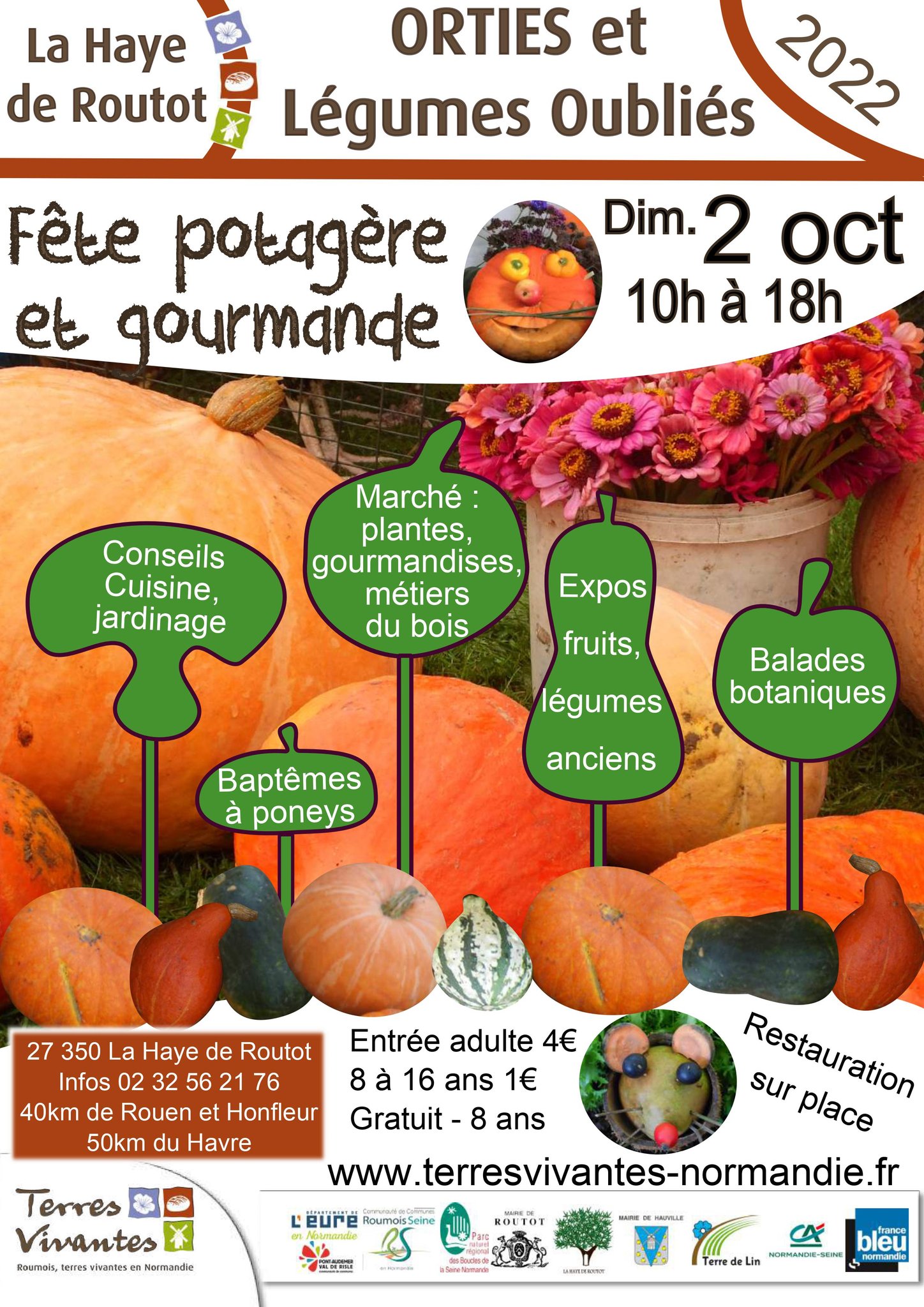Marché de 50 à 70 artisans, producteurs et créateurs (vannerie, miel, fleurs, plantes, jeux traditionnels normands, gourmandises locales, etc).