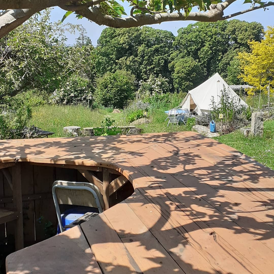 A 300 mètres du centre-ville, vu imprenable sur la Baie du Mont Saint-Michel découvrez le camping écologique (toilettes sèches et compostage, tri, douche solaire, permaculture...) dans un paysage comestible.