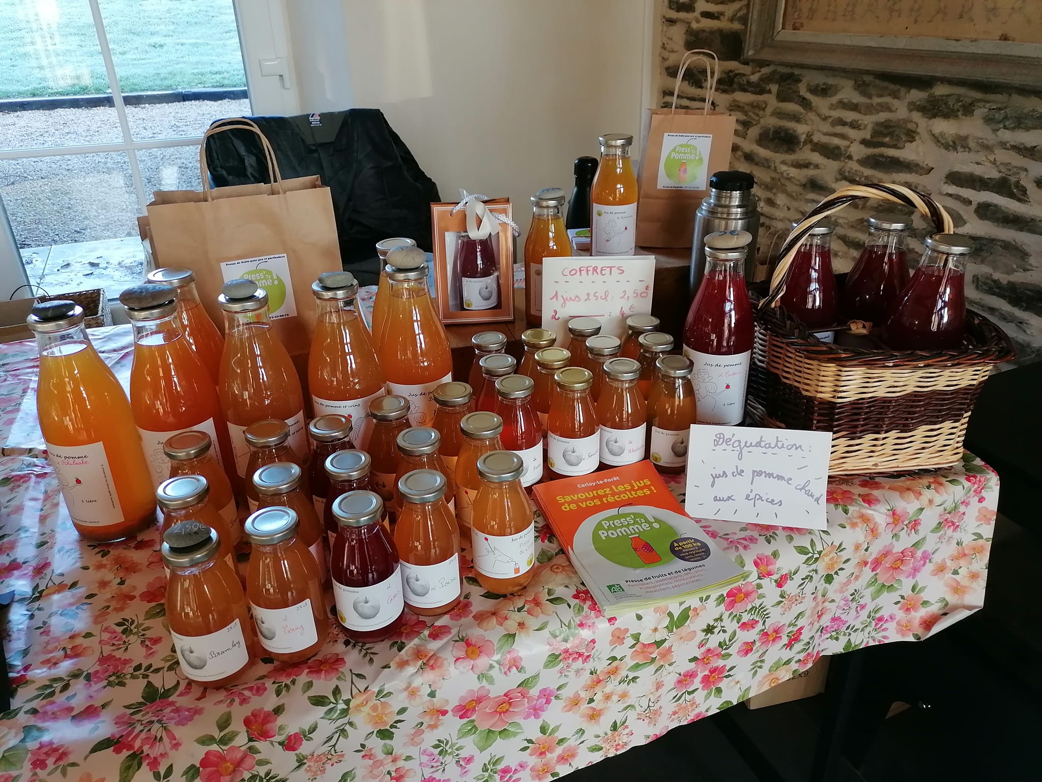 Ils repartent avec leur jus pasteurisé en bouteilles en verre réutilisables les fois suivantes.